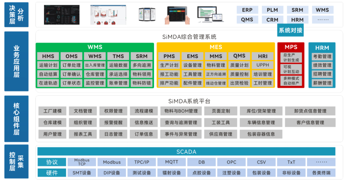• 系統(tǒng)對(duì)接:SiMDA系列系統(tǒng)已成功對(duì)接業(yè)內(nèi)十余家常見的工業(yè)軟件,如ERP、WMS、PLM等。