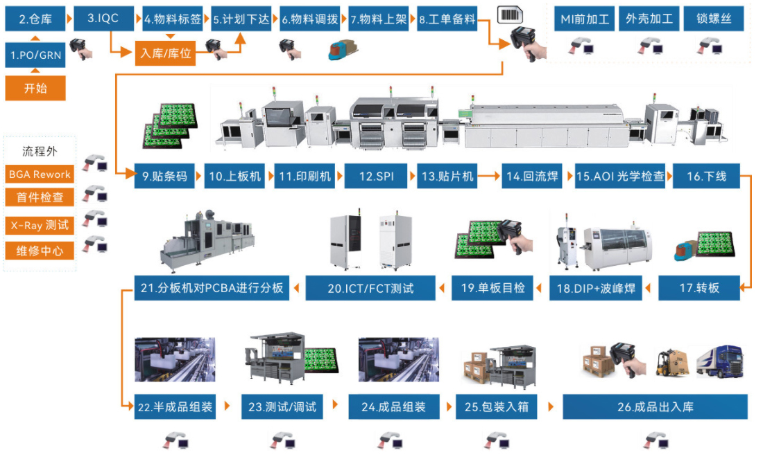 • 我們定位于離散型制造企業(yè),聚焦電子制造行業(yè),多年來專注服務(wù)于 FPC/SMT/DIP/組裝、測(cè)試、包裝/注塑 等工藝領(lǐng)域,全流程或模塊化選擇。