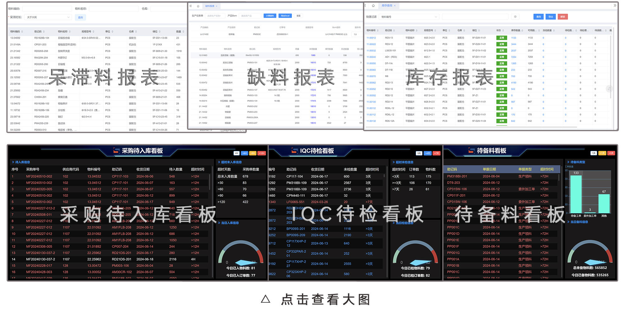 IQC待檢看板、采購待入庫看板、待備料看板......